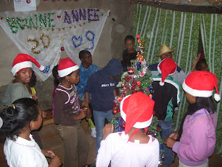 Le 25 à midi, les sites de Mme Pascaline et Bien-Aimé rejoignaient Fahitana pour un grand repas festif où les enfants ont reçu un cadeau qu’ils avaient pu choisir dans une petite liste, et les plus grands ont reçu l’équivalent de 15€ pour acheter ce qu’il souhaitait (pour la plupart ils ont choisi des vêtements). L’après-midi les enfants se sont rendus en ville où il y avait des manèges et des voitures à pédales à louer.